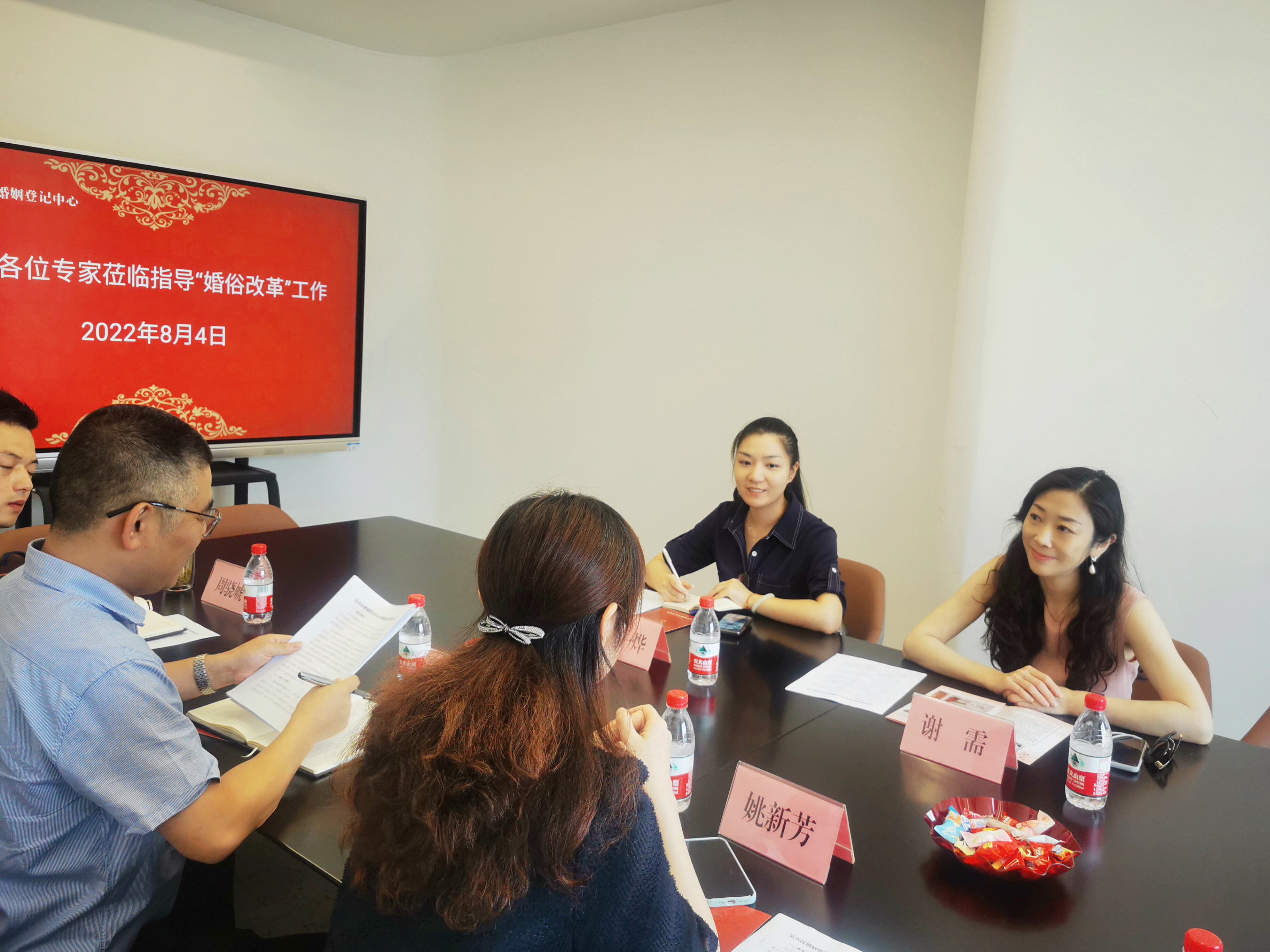 2022年8月4日-5日,浙江省婚姻家庭协会会长谢需,常务副秘书长兼办公室主任徐一烨一行赴湖州市吴兴区、德清县走访调研婚俗改革相关工作。