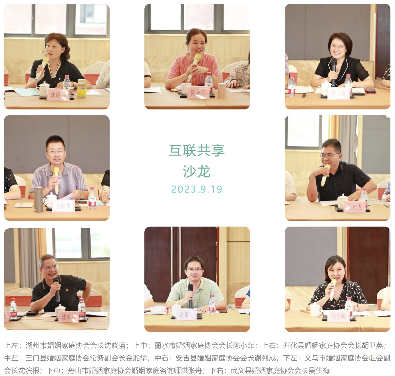 9月19日-20日,由浙江省民政厅社会事务处指导,浙江省婚姻家庭协会发起的全省婚姻家庭协会第一次互联共享沙龙活动在舟山普陀圆满结束。浙江省民政厅社会事务处副处长施晓琼,舟山市民政局社会事务处和区划地名处处长左良凯,舟山市普陀区民政局党组书记、局长丁勇,副局长赵海军,浙江省婚姻家庭协会会长谢需出席活动。