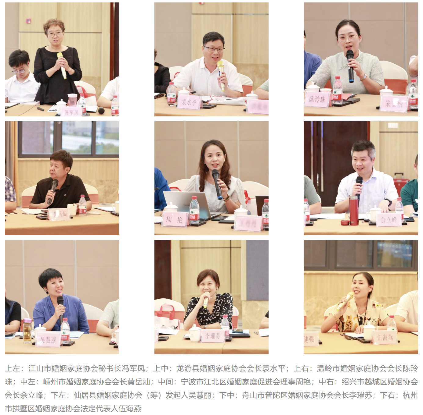 浙江省、湖州市、丽水市、舟山市、三门县、开化县、安吉县、宁波市江北区、嵊州市、绍兴市越城区、义乌市、武义县、江山市、龙游县、温岭市、舟山市普陀区、杭州市拱墅区等17家婚姻家庭协会及仙居县婚姻家庭协会(筹)共40余人参加了本次沙龙活动。