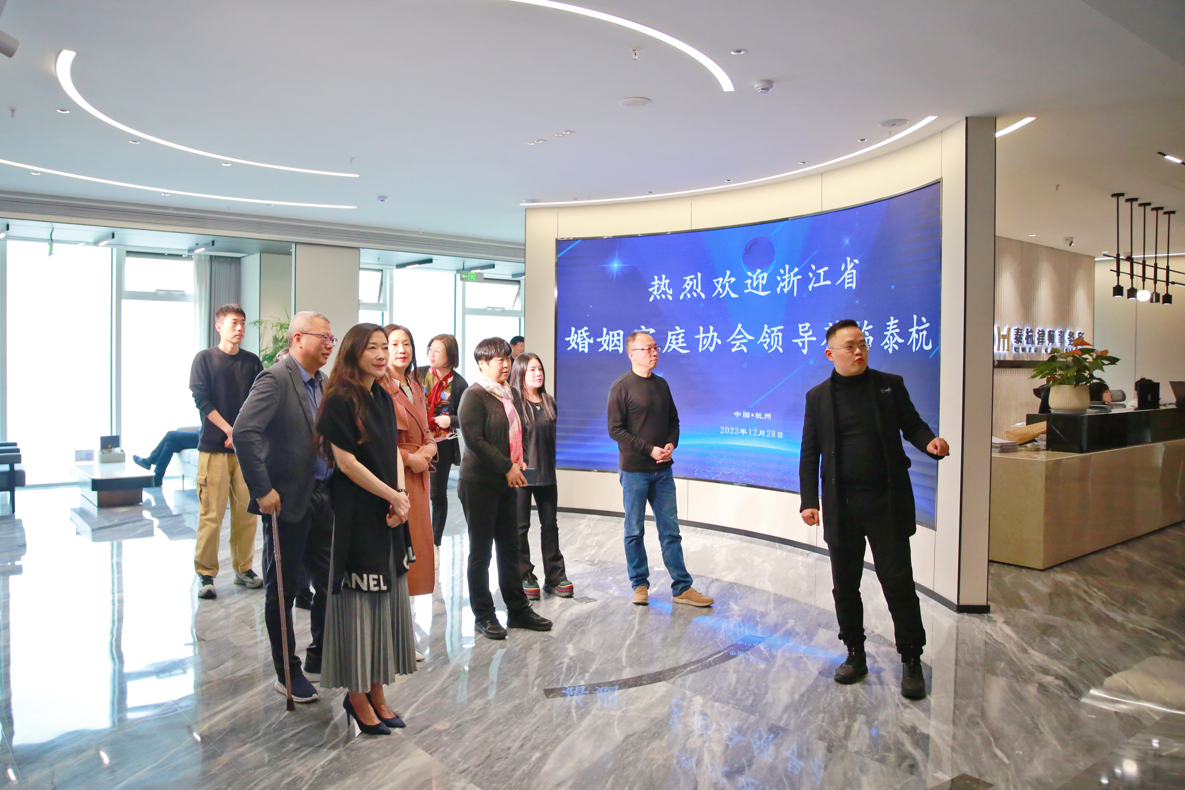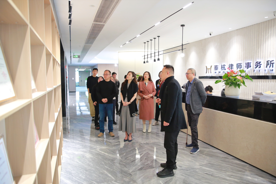当天,在浙江省泰杭律师事务所合伙人、泰杭管委会副主任刘国栋的陪同下,参会人员一行走访参观了浙江泰杭律师事务所。