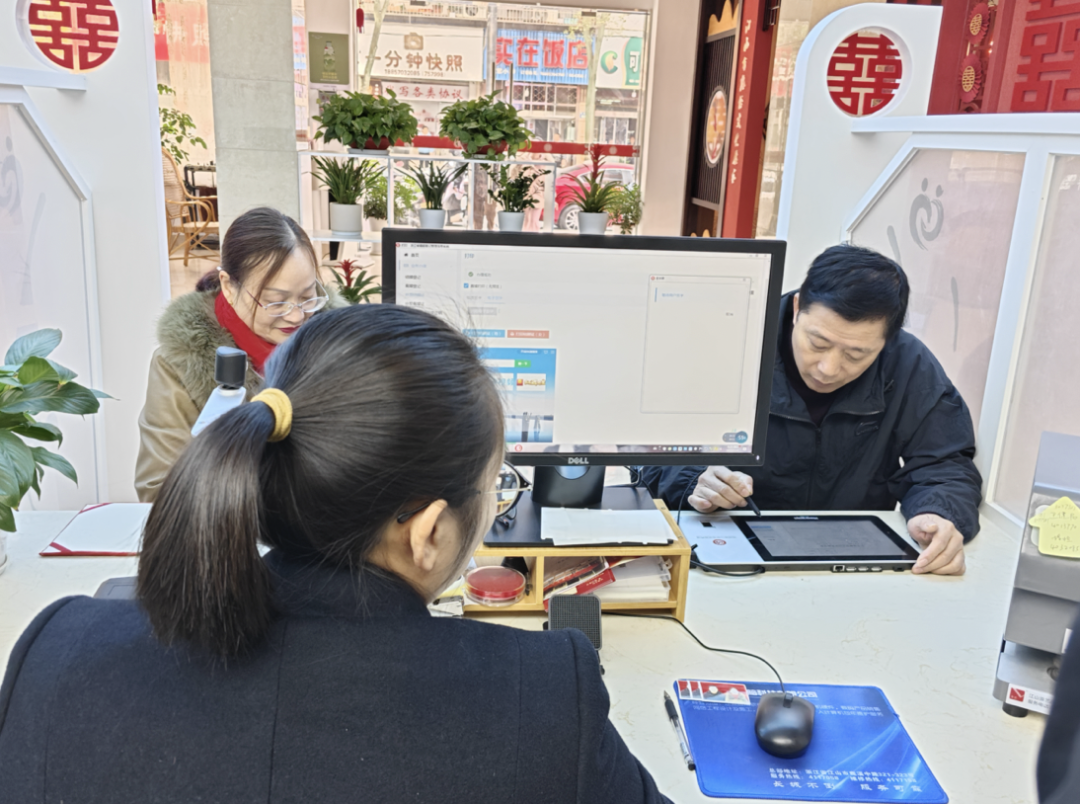 引导拍照、自动打印、贴心办证……有了自动办证机的辅助,不到20分钟,两本崭新的结婚登记证就办理完毕了。婚姻登记处的高效服务,赢得了前来补办结婚证的毛彩凤夫妻俩的称赞。“现在的服务效率太高了,工作人员也很热情,帮我们在各个打卡点拍照留念,我们很满意。”