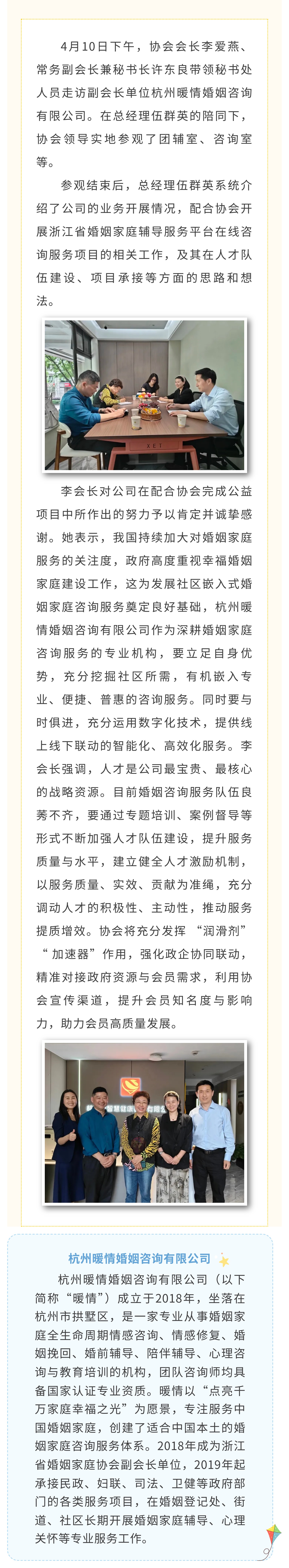 协会领导走访副会长单位杭州暖情婚姻咨询有限公司