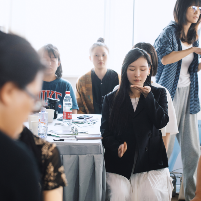 次日的课程,资深艺术家经纪人、艺术品收藏指导分析师、国家精油疗法高级康复理疗师、德国TUV莱菌认证精油理疗师林森老师向学员们传授了其专业的芳香手法实操,学员们互相演练学习,场内的氛围感瞬间拉满。