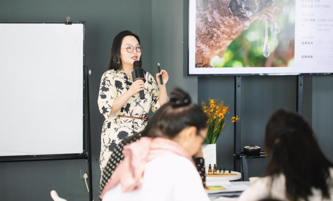 课程首日,协会邀请上海复旦大学经济学硕士、植物精油疗法培训校长、国家职业技能鉴定理疗保健类考评员李晓鹏老师,来完成教学的第一个课程模块。她以其近20年中医养生实践,籍由植物精油疗法,帮助了上万个家庭疏解身心困扰,并已累计数十万以上的精油案例实证。
